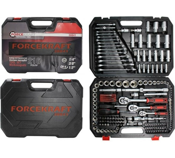 216 ნაჭრიანი პროფესიონალური ხელსაწყოების ნაკრები FORCEKRAFT 38841