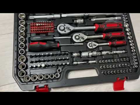 ქანჩის გასაღები კომპლექტში 12 ც ზომით 8 - 22 მმ თავაკები (ბიტები): 5/16": SL6, SL6.5, SL8, PH3, PH4, PZ3, PZ4, T25, T27, T30, T35, T40 (2 ც), T45, T50, T27H, T30H, T35H, T40H, T45H, T50, H5.5, H6, H6.5, H7, H8, M5, M6, M8, M10; 1/4": T8 - T40, PH1, PH2, PZ1, PZ2, H3 - H6, SL4 - SL6.5, M5 - M8, SQ1, SQ2 და სხვ. 74 ც ექვსწახნაგა ქანჩები